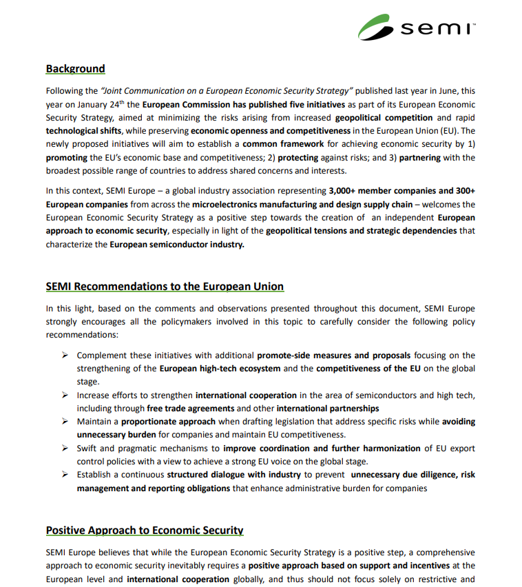 相反,SEMI 认为,如果确保欧洲的经济安全是目标,那么出口管制应该是“防止技术泄露的主要手段”——而且只有在绝对必要时才如此。